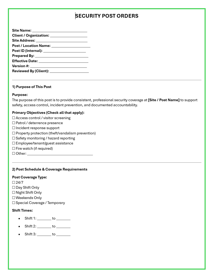 This free toolkit gives security guard companies and in-house security teams four editable templates you can use immediately to standardize operations, reduce admin work, and tighten accountability.